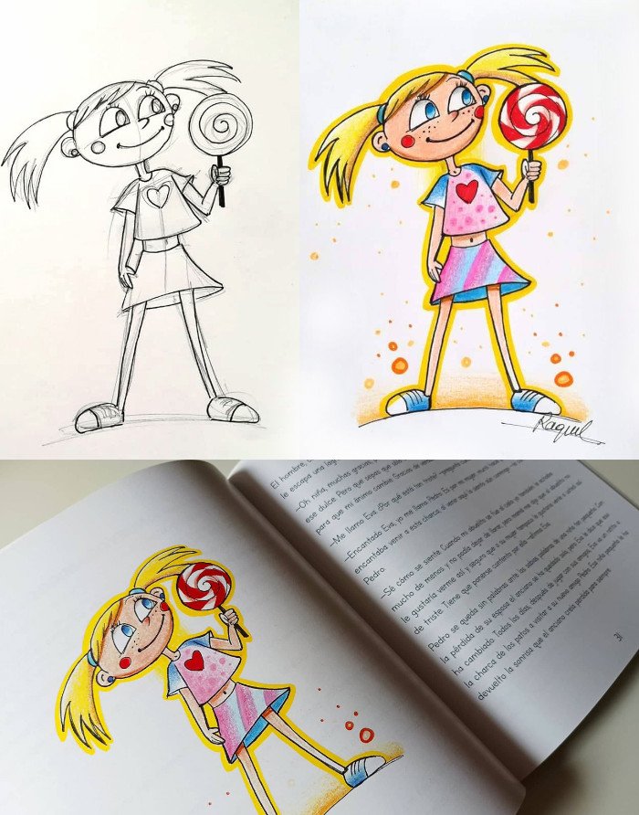 Todos y cada uno de estos libros tienen un trocito de mí, pues en cada ilustración hay tiempo, dedicación, esfuerzo y mucho bocetaje. Pasan meses —muchos meses— desde que nace la idea, un escritor quiere colaborar contigo y el proyecto ve la luz.